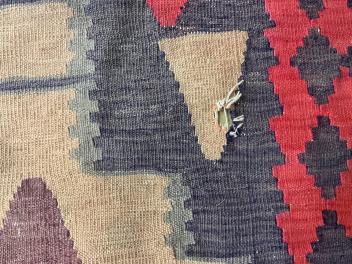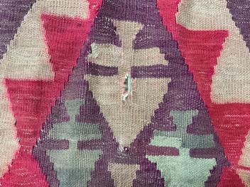 Lot 100 , A Kilim hall rug, 380 x 183cm, (holed in several places)
