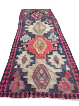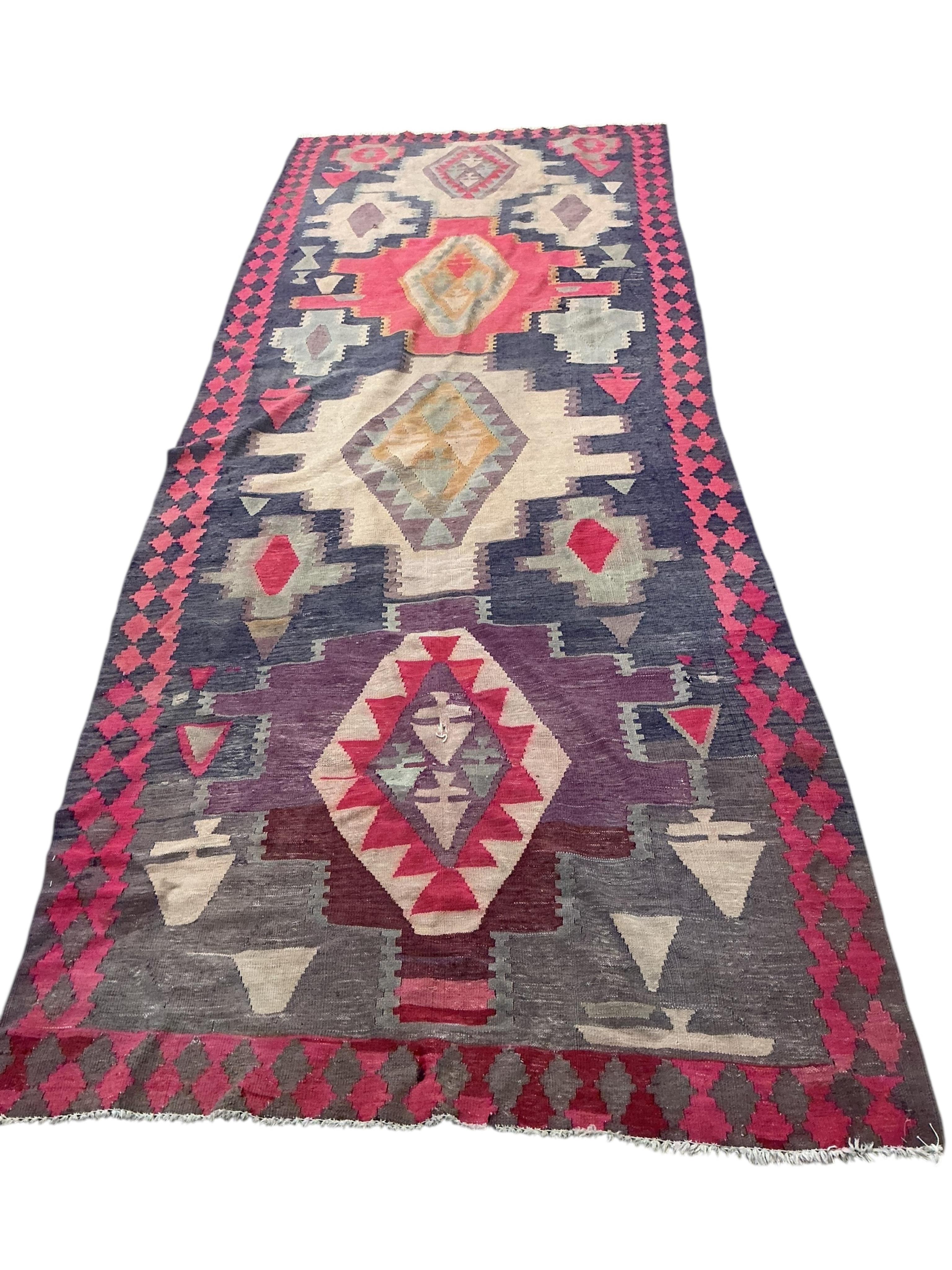 A Kilim hall rug, 380 x 183cm, (holed in several places)