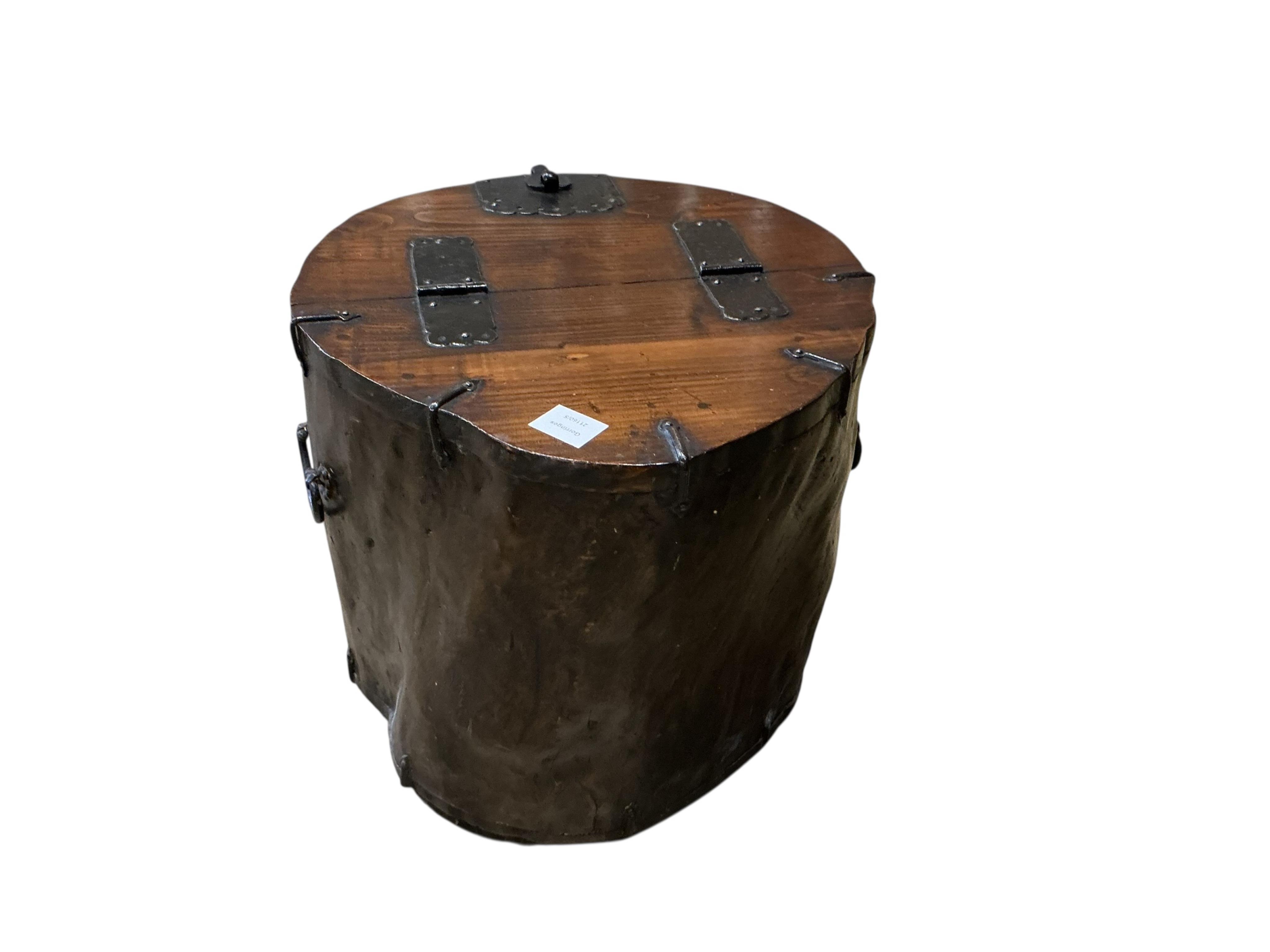 Lot 1285 , A Korean iron mounted elm trunk / chest, diameter 45cm, height 42cm