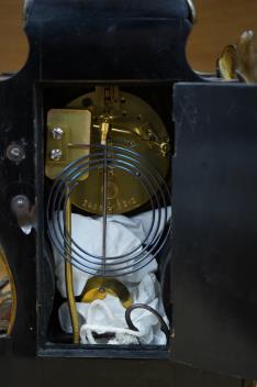 Lot 454 , A Louis XV style tortoiseshell and ormolu-mounted mantel clock with pendulum and key, the dial inscribed Hamilton & Inches, Paris, 41cm high