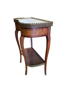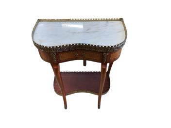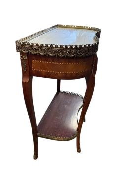 Lot 1206 , A Louis XVI style kidney shaped two tier side table, width 61cm, with white and grey veined marble inset top, depth 33cm, height 76cm