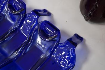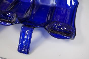 Lot 1410 , A Mary Canny six sectioned blue bottle art glass tray, 36.5cm deep x 51cm wide