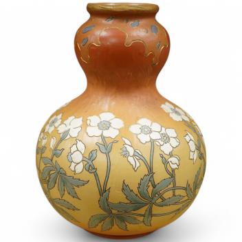 Lot 341 , A Mettlach stoneware floral vase, impressed marks, 36cm high. Condition - fair/good