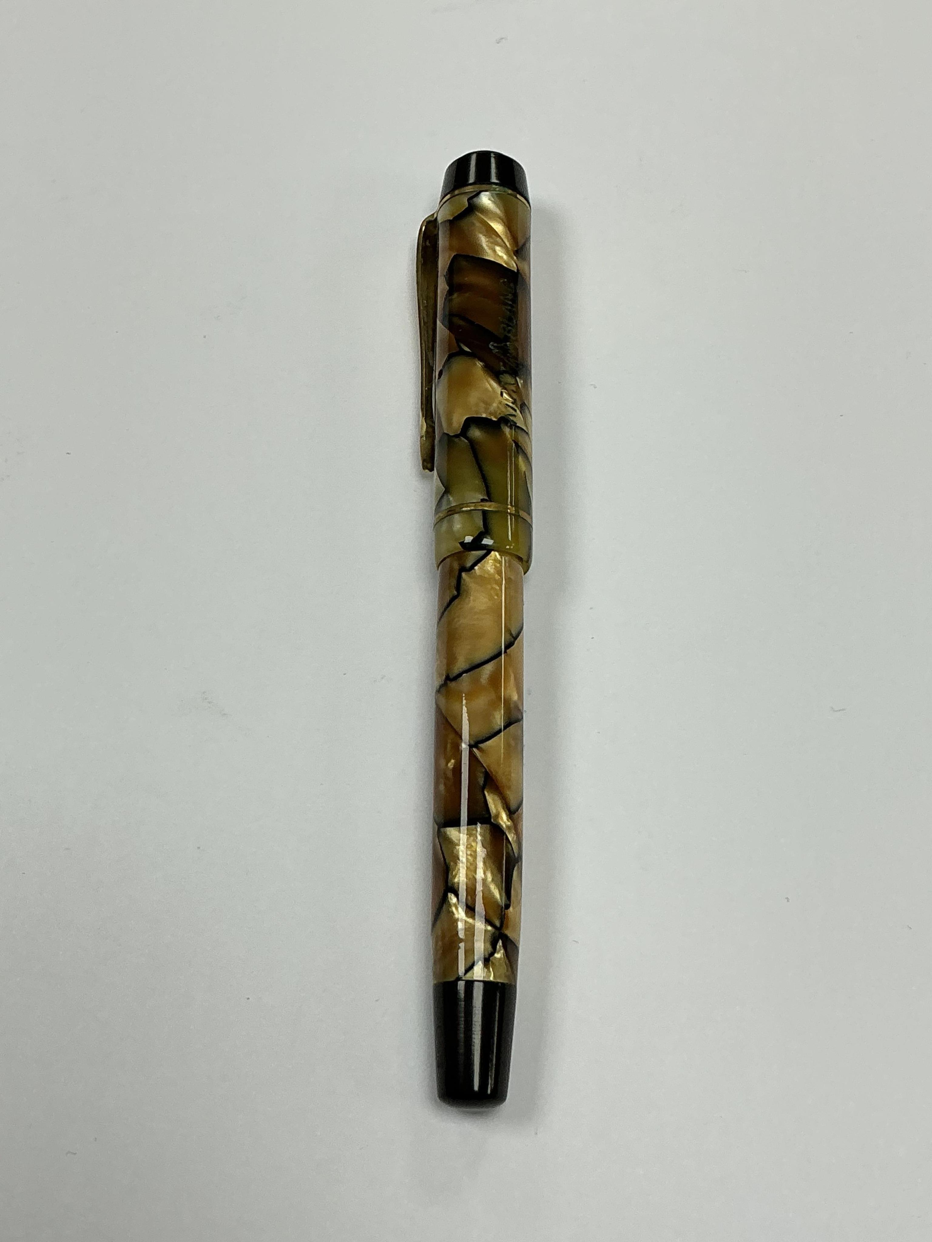 A Montblanc black and pearl fountain pen, No.302 fitted with broad oblique nib (OBB) button filler