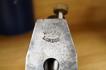 Lot 2334 , A Norris A12 adjustable smoothing plane, stamped with Norris, London to both the gunmetal lever cap and the iron, with owner’s name stamped to the top face of the front infill