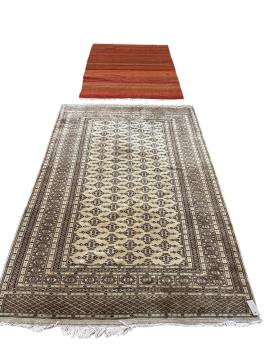 Lot 99 , A North West Persian fawn ground rug, 196 x 126cm together with a flatweave rug