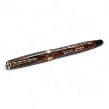 Lot 2018 , A Parker full size Royal Challenger fountain pen in brown herringbone pattern with Parker 14ct. gold nib - USA