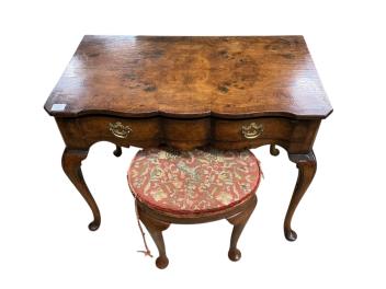 Lot 109 , A Queen Anne Revival banded walnut side table, width 90cm, depth 51cm, height 72cm together with a similar stool
