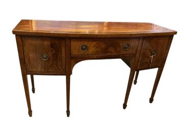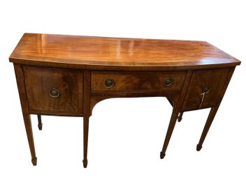 Lot 1100 , A Regency style banded mahogany bowfront sideboard, width 152cm, depth 57cm, height 92cm