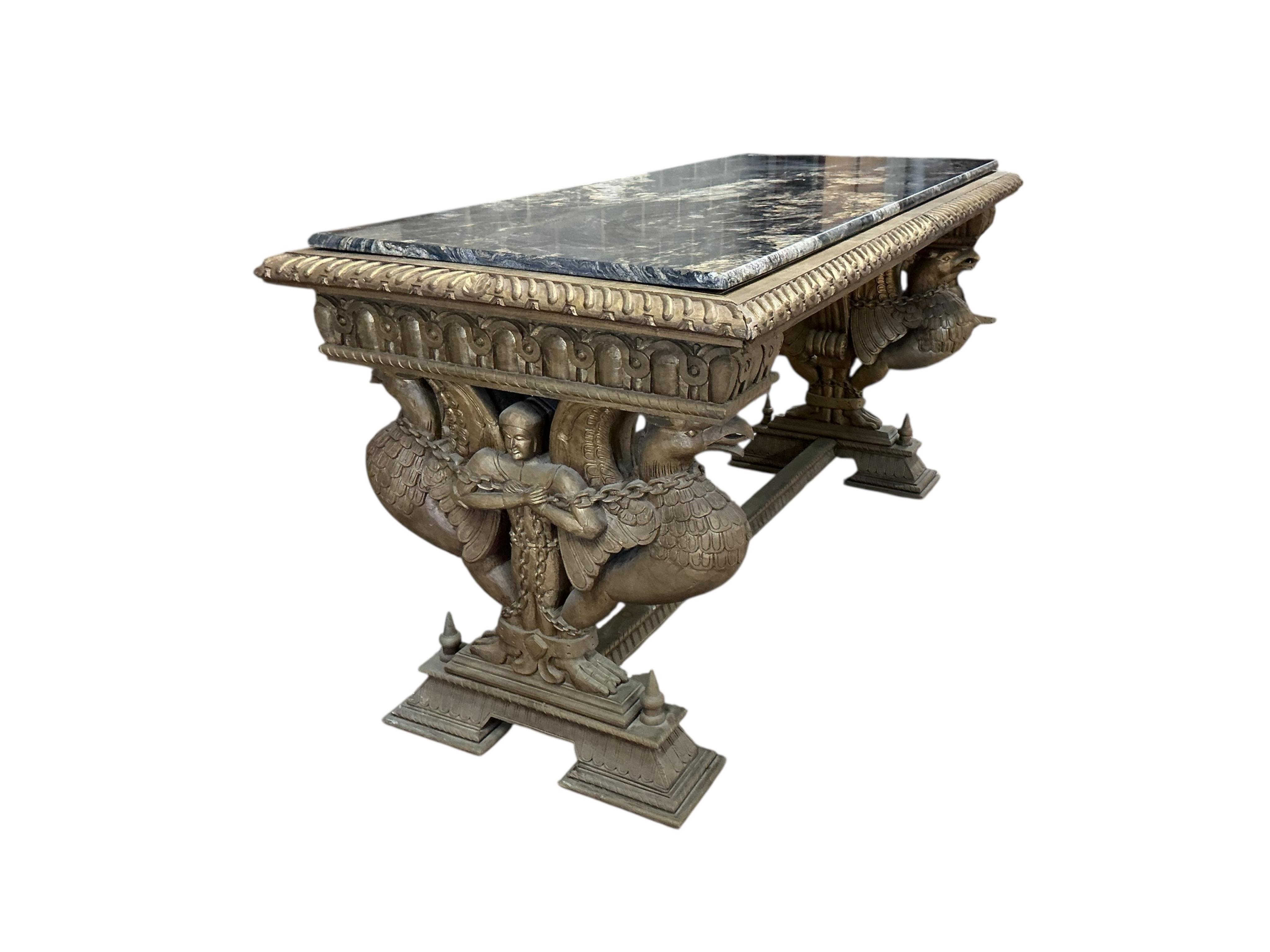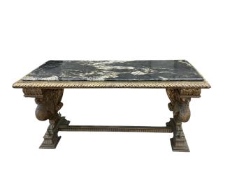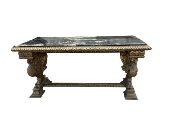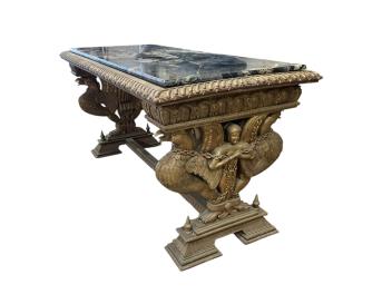 Lot 1249 , A Renaissance style hardstone topped giltwood rectangular console table, width 186cm, depth 83cm, height 90cm