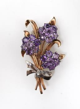 Lot 653 , A Retro amethyst and diamond brooch, circa 1956