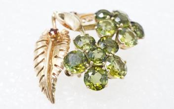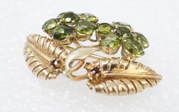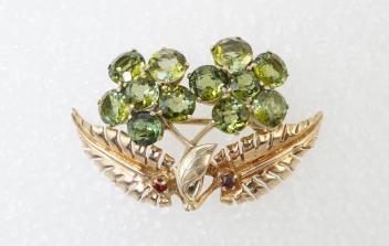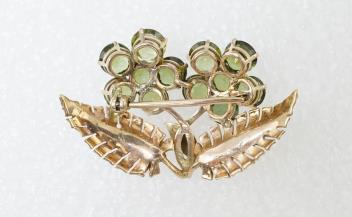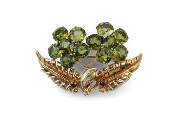 Lot 424 , A Retro gold and peridot brooch, 1940s