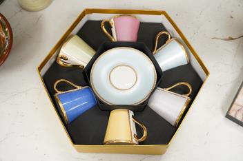 Lot 1348 , A Royal Collection of Faberge set of six bone china cups and saucers, boxed