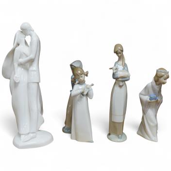 A Royal Doulton Images group and four LLadro figures