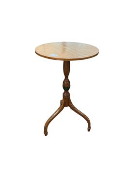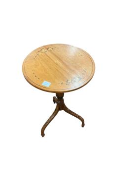 Lot 1093 , A Sheraton style floral painted and decorated circular topped wine table, on a carved pillar and inverted splayed tripod base, diameter 43cm, height 70cm