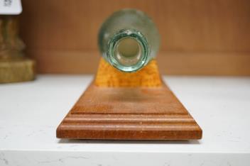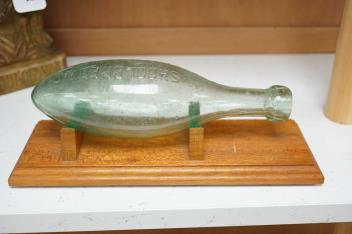 A Shoolbred & Co pressed glass bottle, on stand, bottle 25cm