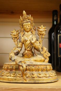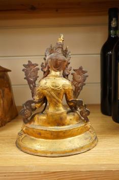 A Sino Tibetan gilt bronze figure of Green Tara, 23cm high