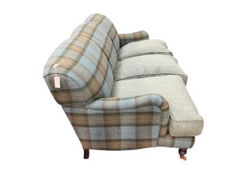 A Sofa Workshop tartan wool fabric three seater sofa in the style of Howard and Sons, width 194cm, depth 96cm, height 88cm