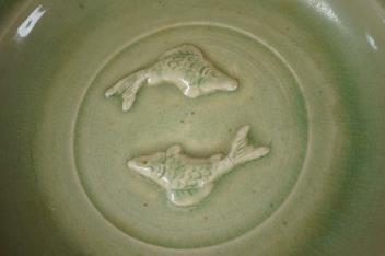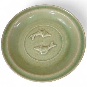 A South East Asian celadon glazed twin fish dish, 26cm diameter