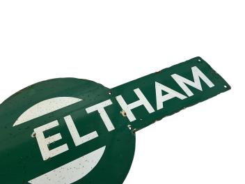 A Southern Railway enamel platform target sign for NEW ELTHAM, 91.5cm wide