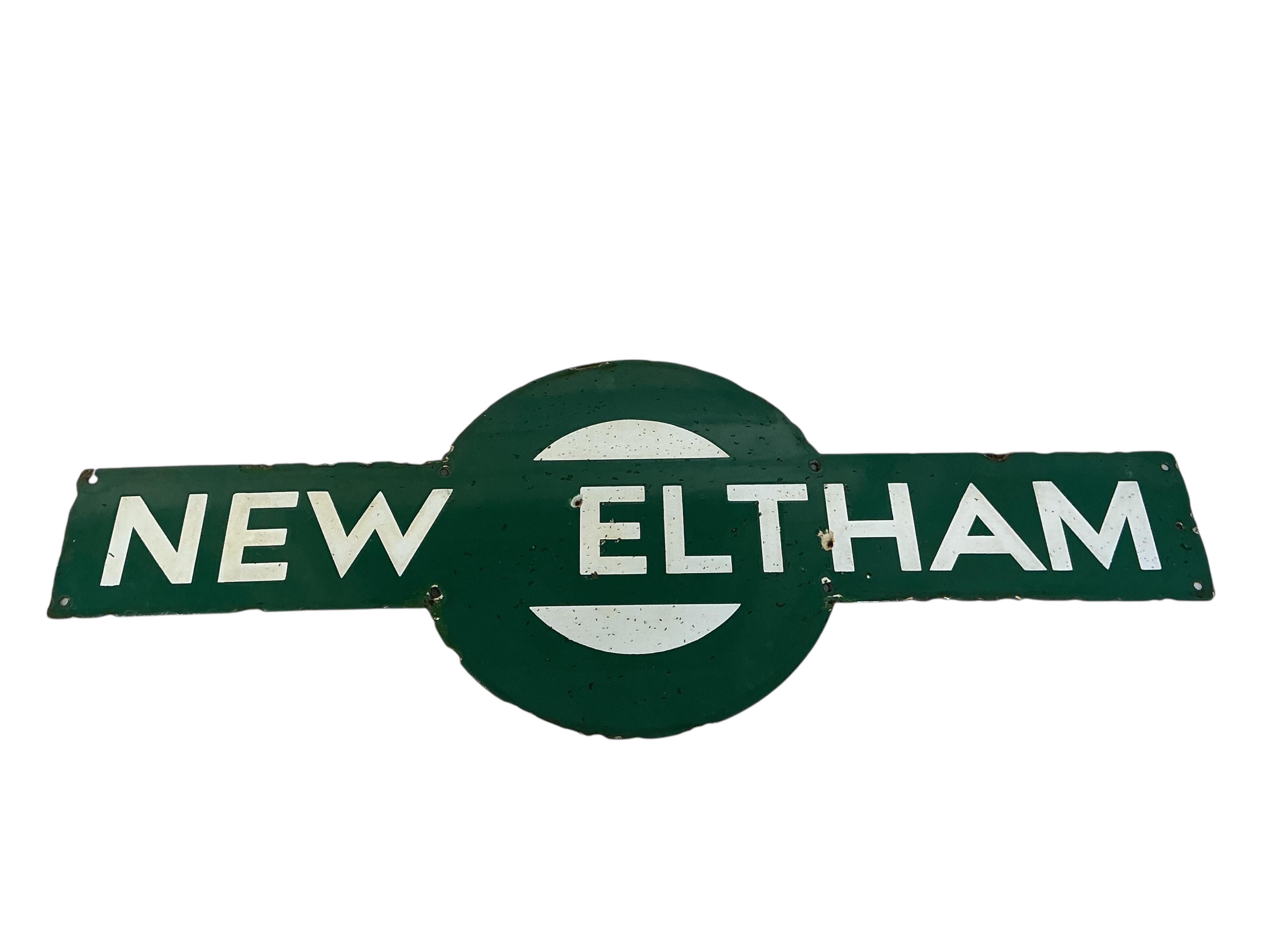Lot 187 , A Southern Railway enamel platform target sign for NEW ELTHAM, 91.5cm wide