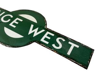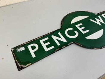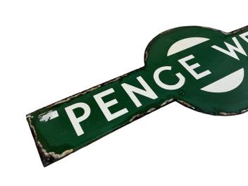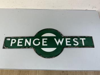 A Southern Railway enamel platform target sign for PENGE WEST, Forest Hill to Norwood Junction line, 91cm wide