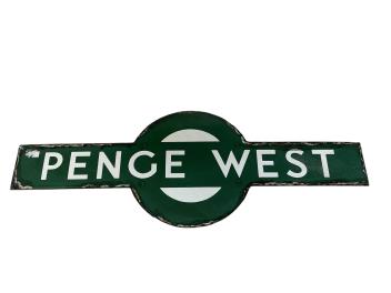 Lot 184 , A Southern Railway enamel platform target sign for PENGE WEST, Forest Hill to Norwood Junction line, 91cm wide