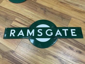 A Southern Railway enamel platform target sign for RAMSGATE, 84cm wide