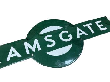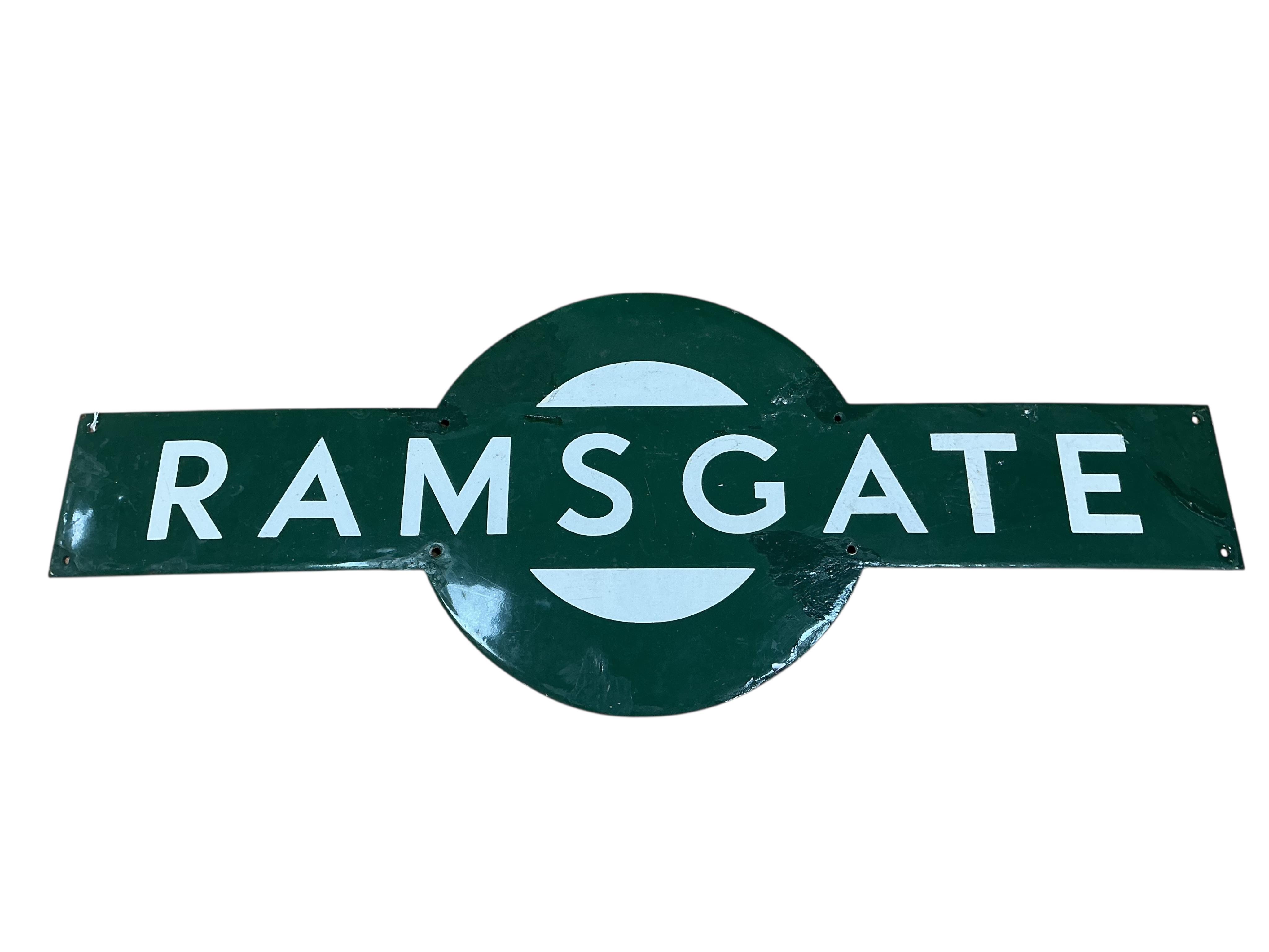 Lot 181 , A Southern Railway enamel platform target sign for RAMSGATE, 84cm wide