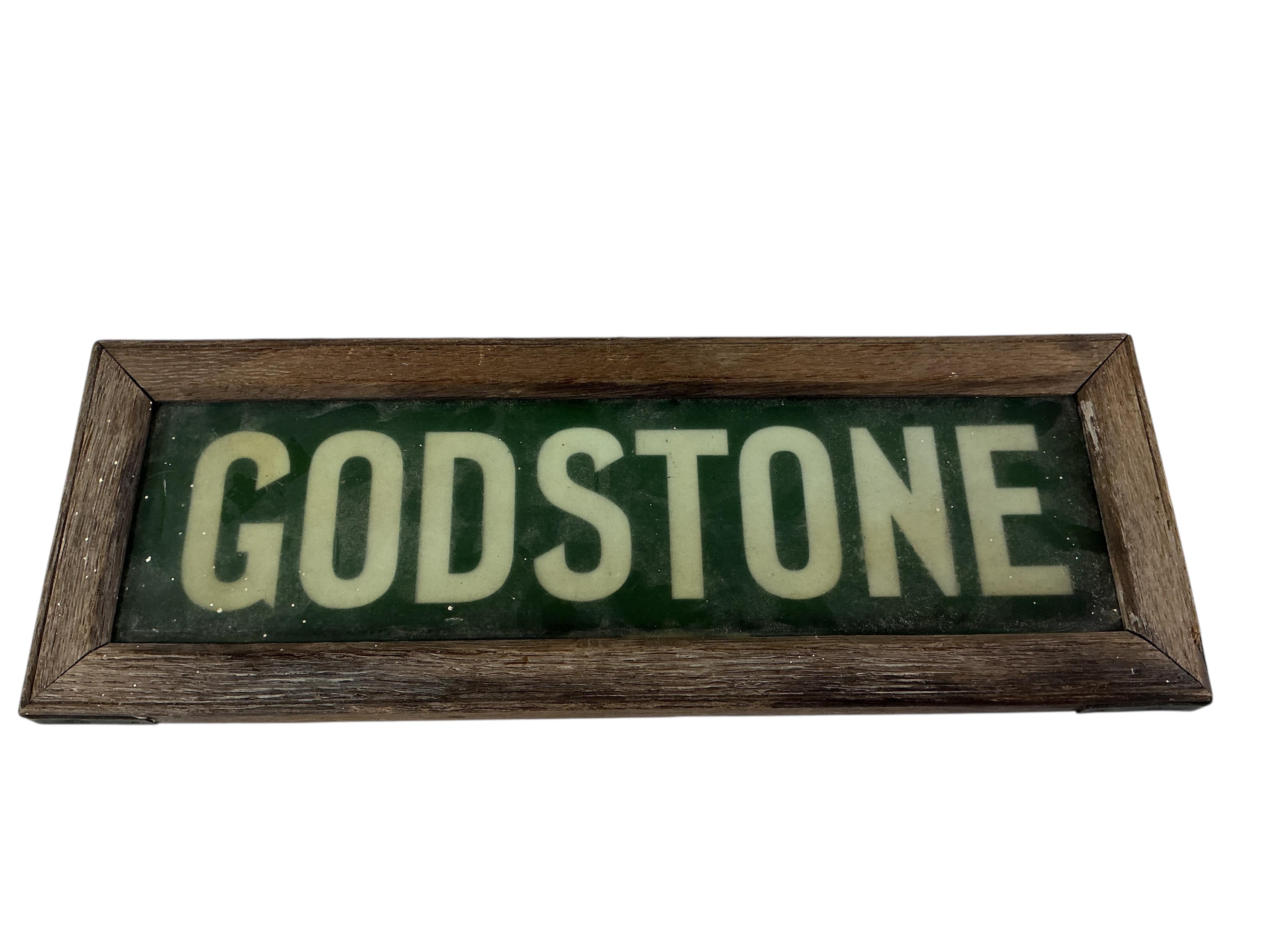 A Southern Railway glass lamp tablet for GODSTONE, ex-LB&SCR, in its original oak frame, 45.5cm wide