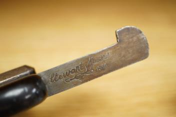 Lot 2320 , A Spiers steel shoulder plane with ebony infill and wedge, 7/8”, stamped ‘Spiers 3 Ayr 2’ to the plane, with ‘Stewart Spiers’ stamped to the wedge and the iron