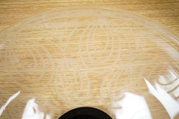 Lot 3195 , A St Louis Art Deco bowl, etched band of concentric flower buds on a black foot, diameter 32cm.