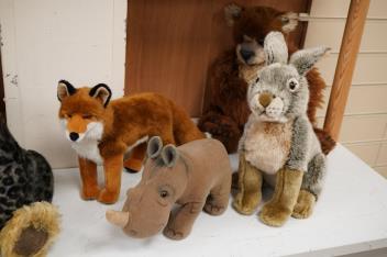 Lot 1492 , A Steiff blond Teddy bear with growler, four other Steiff animals, and twelve other soft toys, the first 38cm