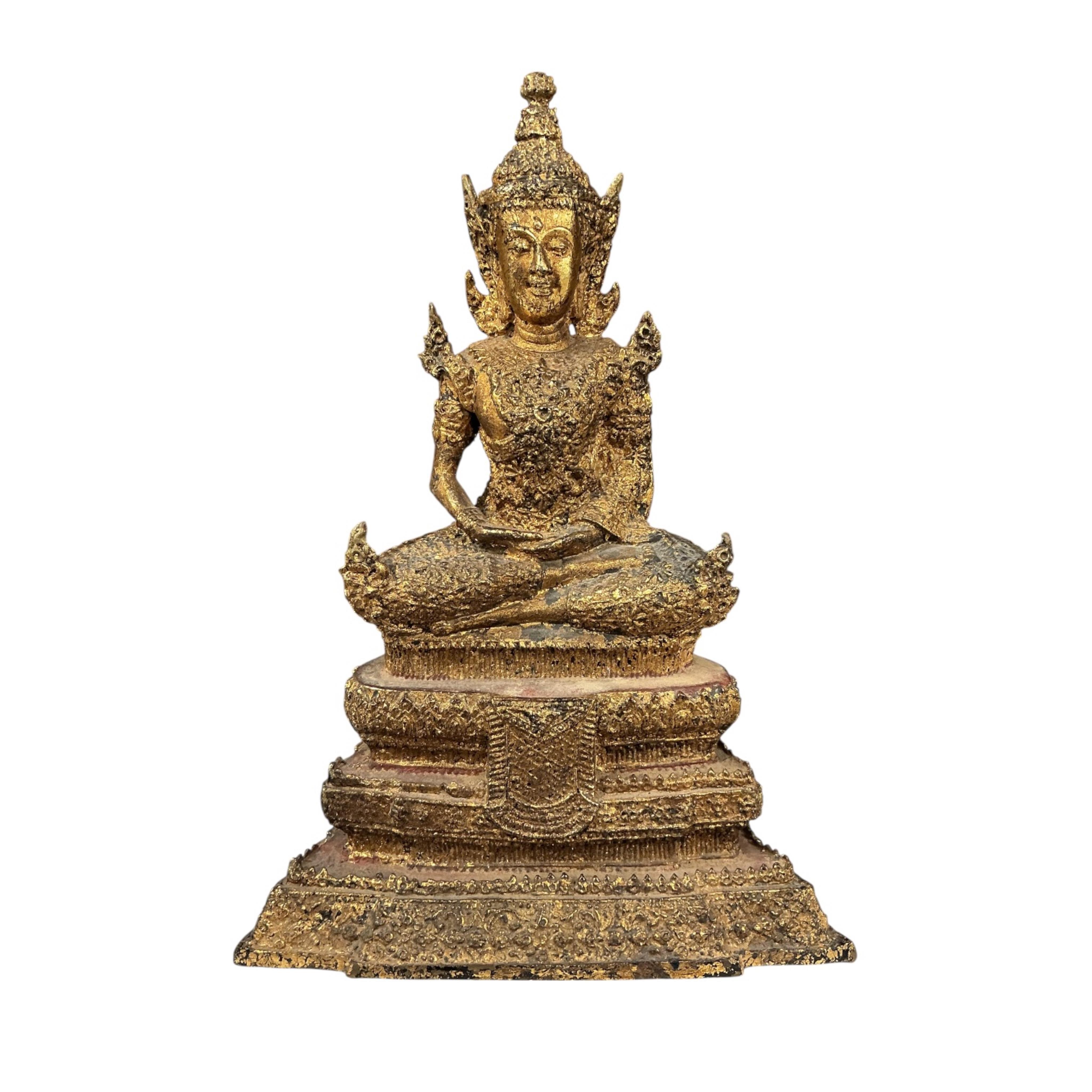 A Thai gilt-bronze Buddha, seated on stepped base, 29cm