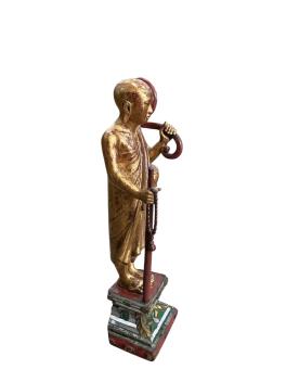 Lot 2019 , A Tibetan or Thai carved giltwood figure of a priest on a mirrored plinth, height 80cm