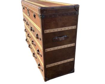 Lot 3426 , A Timothy Oulton Ampleforth sideboard in 'vintage cigar' finish, the upper compartment with hinged cover above an arrangement of six drawers, width 155.5cm, depth 52cm, height 101.5cm