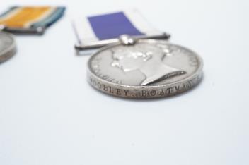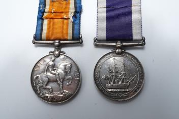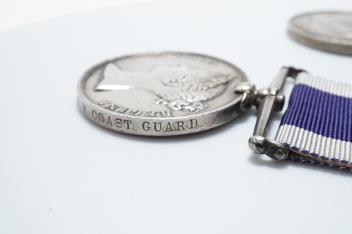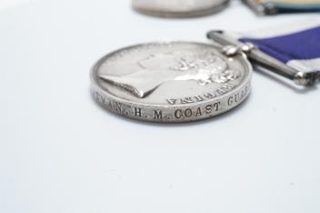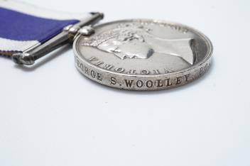 Lot 1333 , A Victoria and GV medal pair awarded to George S. Woolley, Boatman, H.M. Coast Guard, comprising of a Victoria Royal Naval Long Service and Good Conduct medal and a GV First World War 1914-1918 medal
