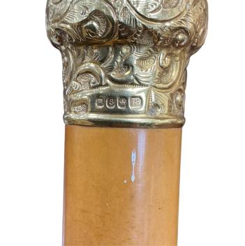 Lot 414 , A Victorian 18ct. gold mounted malacca walking cane, length 90cm