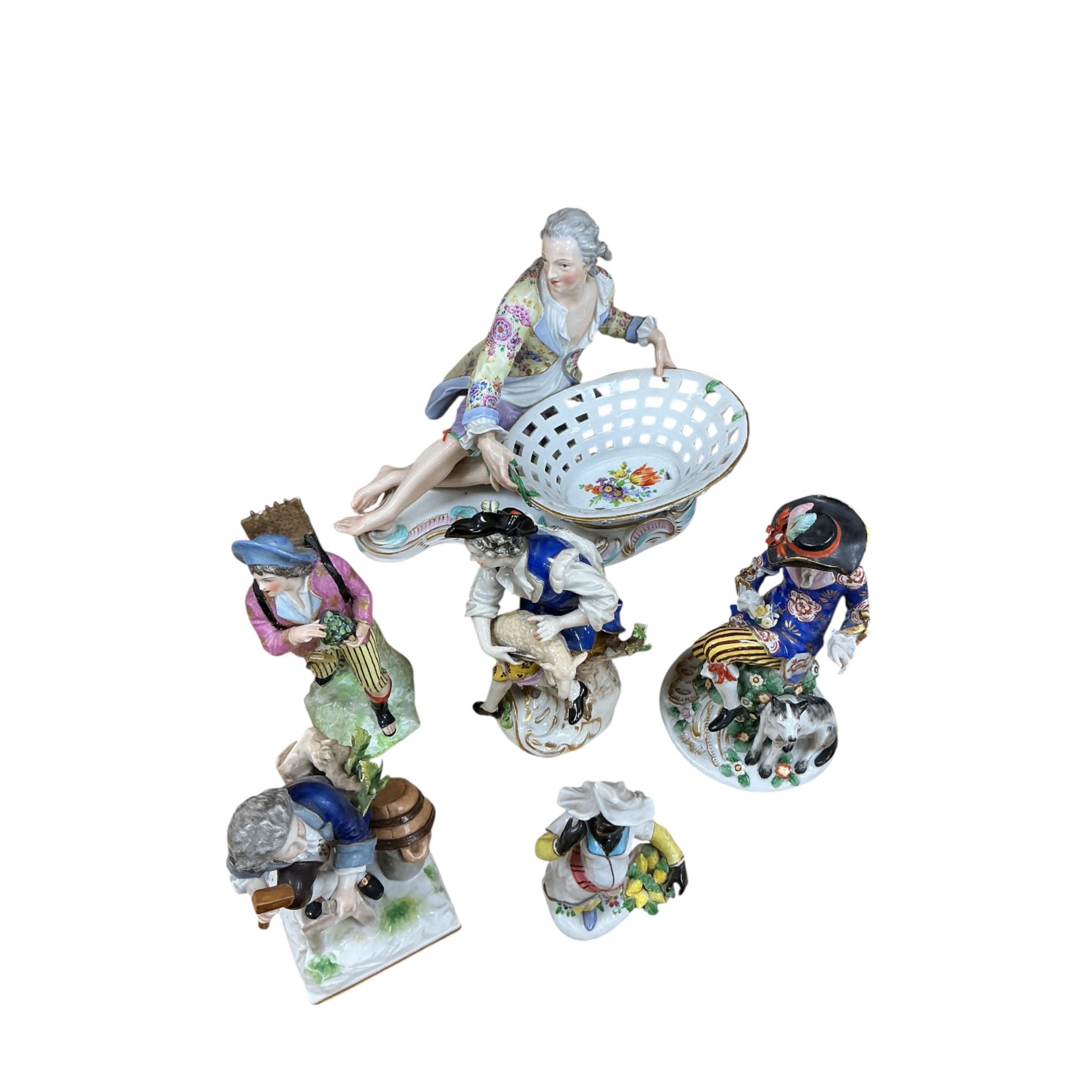 Lot 448 , A Victorian Continental figural sweetmeat dish - 28cm wide and five figures