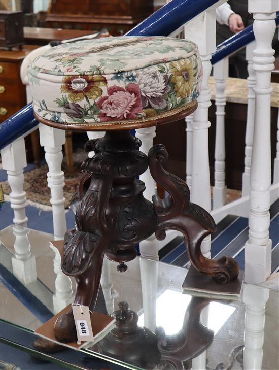A Victorian carved mahogany adjustable piano stool