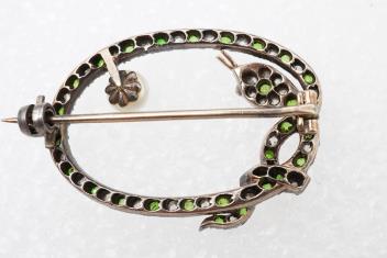 Lot 448 , A Victorian demantoid garnet, pearl and diamond brooch, late 19th century