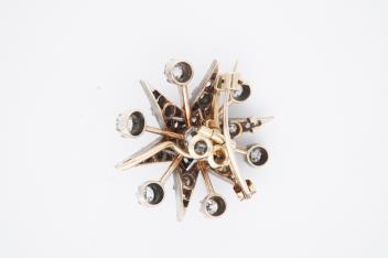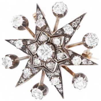Lot 2921 , A Victorian diamond brooch/pendant, late 19th century, designed as a star, set with circular-cut, cushion-shaped and rose-cut diamonds totalling approximately 1.80 carats, mounted in silver and gold, length 3cm, gross we
