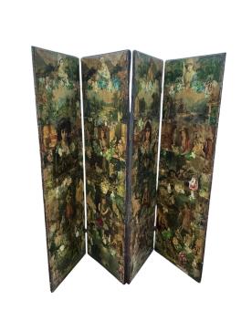 Lot 1023 , A Victorian four fold scrap screen, each panel width 54cm, height 169cm