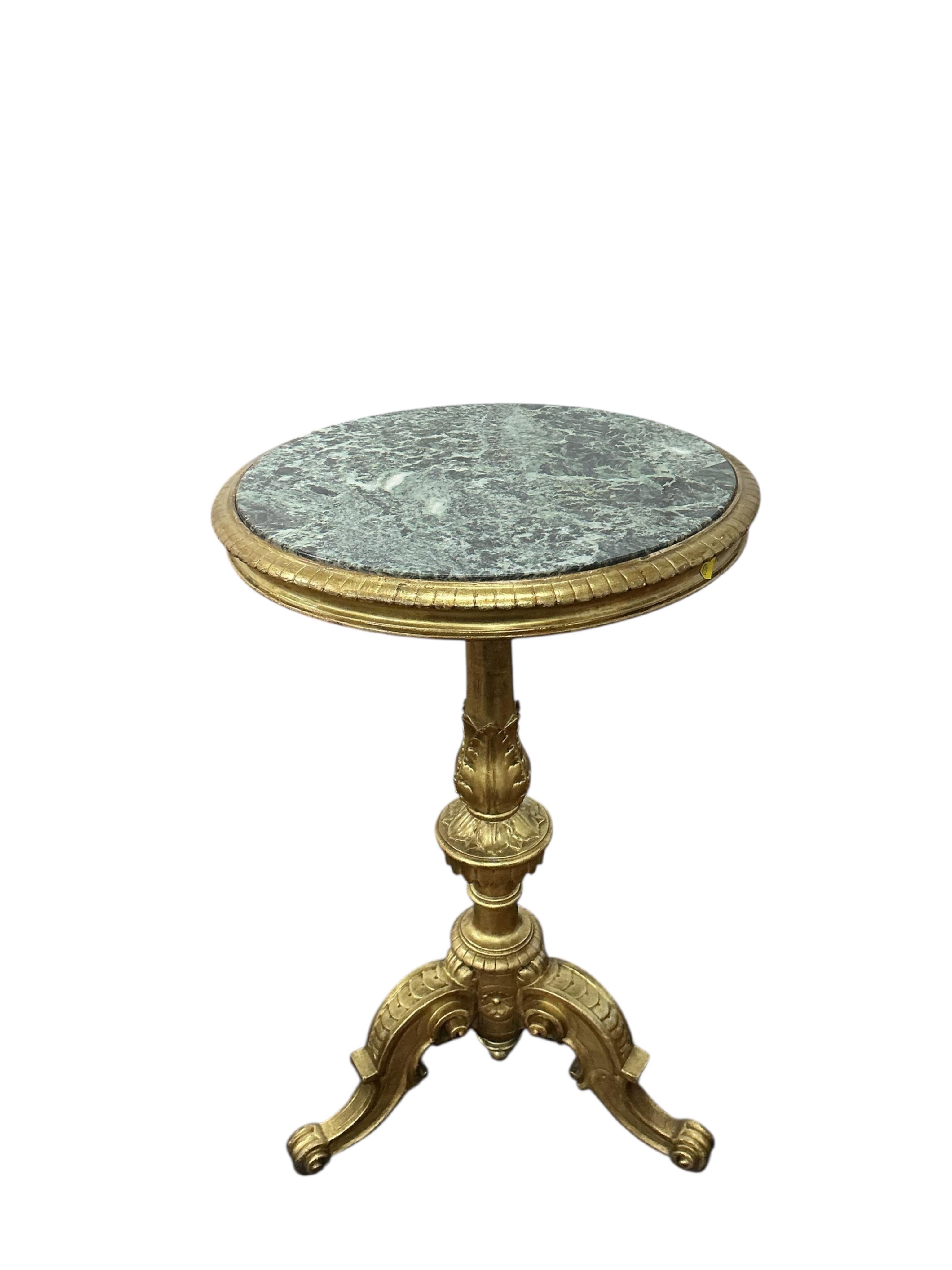 Lot 15 , A Victorian giltwood and marble topped circular occasional table, diameter 49cm, height 79cm