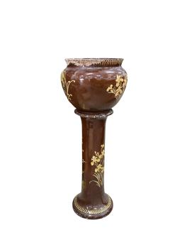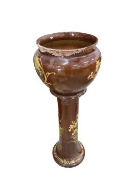 Lot 2033 , A Victorian glazed earthenware jardiniere on stand, diameter 44cm, height 108cm