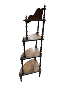 Lot 2068 , A Victorian inlaid walnut corner whatnot, width 64cm, depth 40cm, height 132cm.