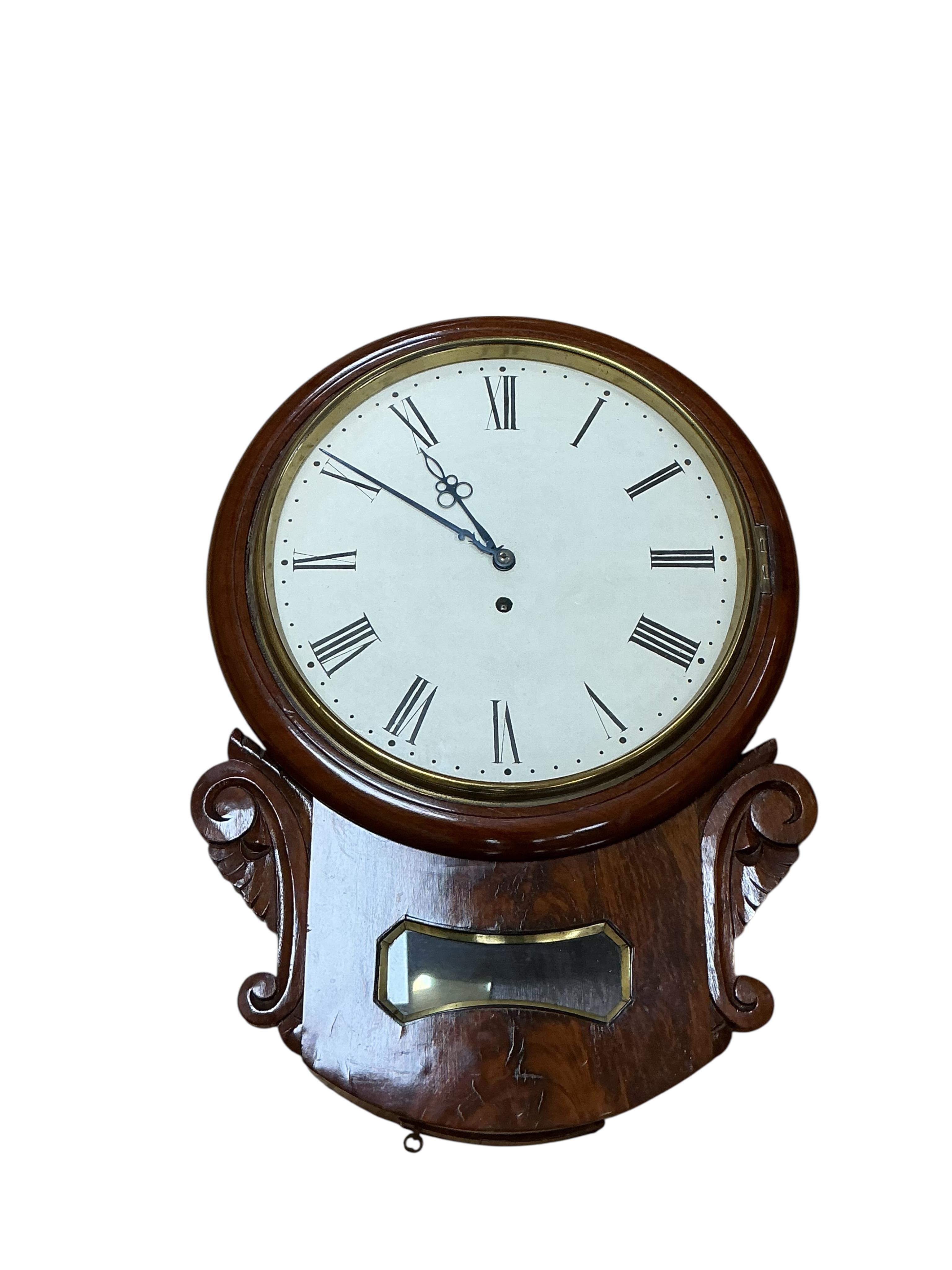 Lot 406 , A Victorian mahogany drop dial wall clock, 53cm high