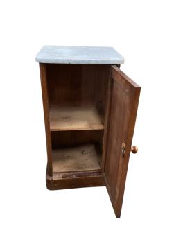 Lot 26 , A Victorian mahogany marble top bedside cabinet, width 39cm, depth 34cm, height 76cm (marble top damaged)