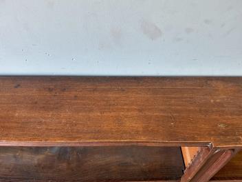 The shelves are adjustable, splits to the top. No visible signs of any woodworm. Gaps to the joints of the back panels. Minor chips + losses consistent with age and usage. Additional photos of the top have been added.