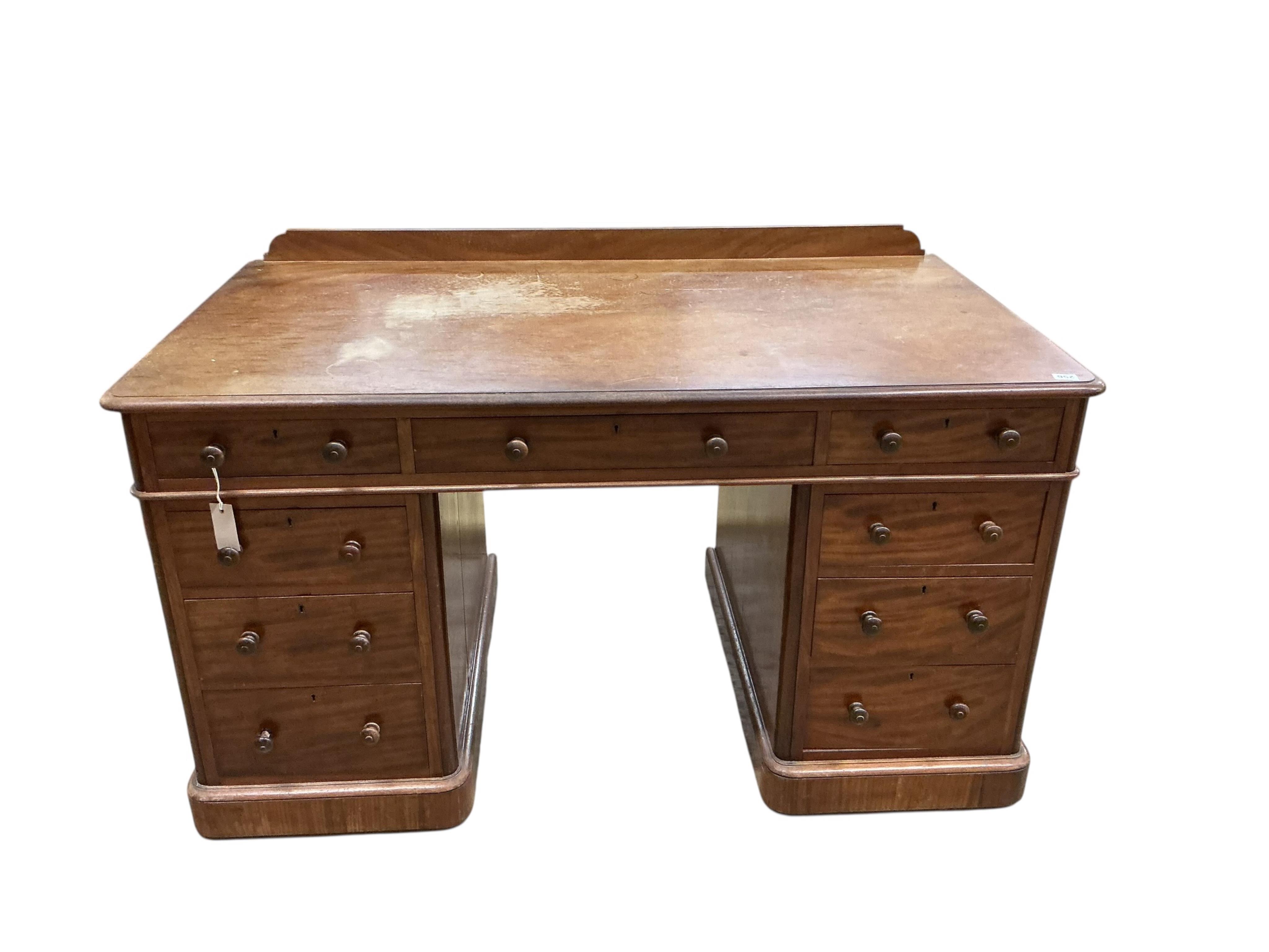 A Victorian mahogany pedestal desk, width 136cm, depth 75cm, height 75cm